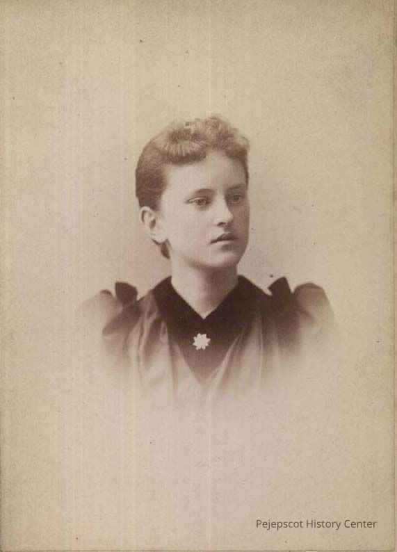 A B/W cabinet photograph of a young woman. This has a different style of back and printing. Undated