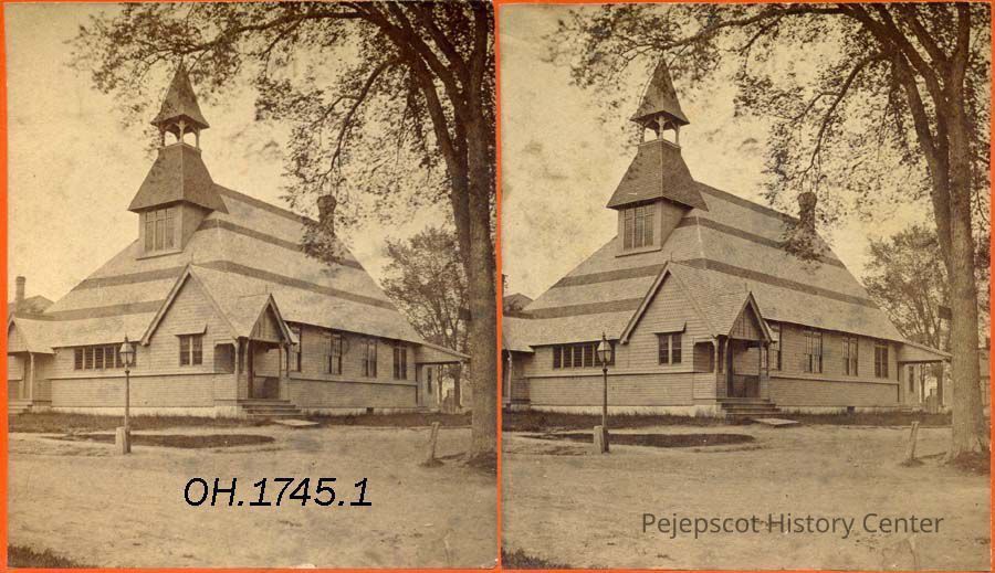 A stereo view of the Unitarian Church on the corner of Federal Street and Jordan Avenue, Brunswick, ME. Not dated.