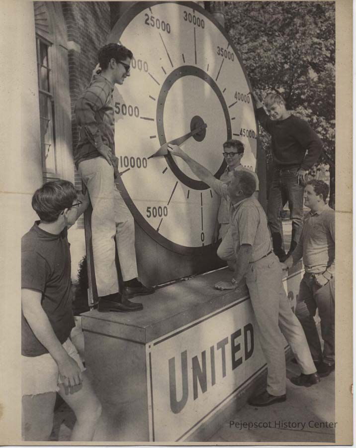 Photo of the United Way Campaign Dial in front of the Maine National Bank, 110 Maine Street Brunswick, Maine.