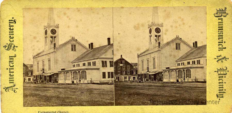 Stereopticon slides, Stereographs, Churches - Universalist Church, Streets - Maine, Streets - Mason, Architecture, Brunswick