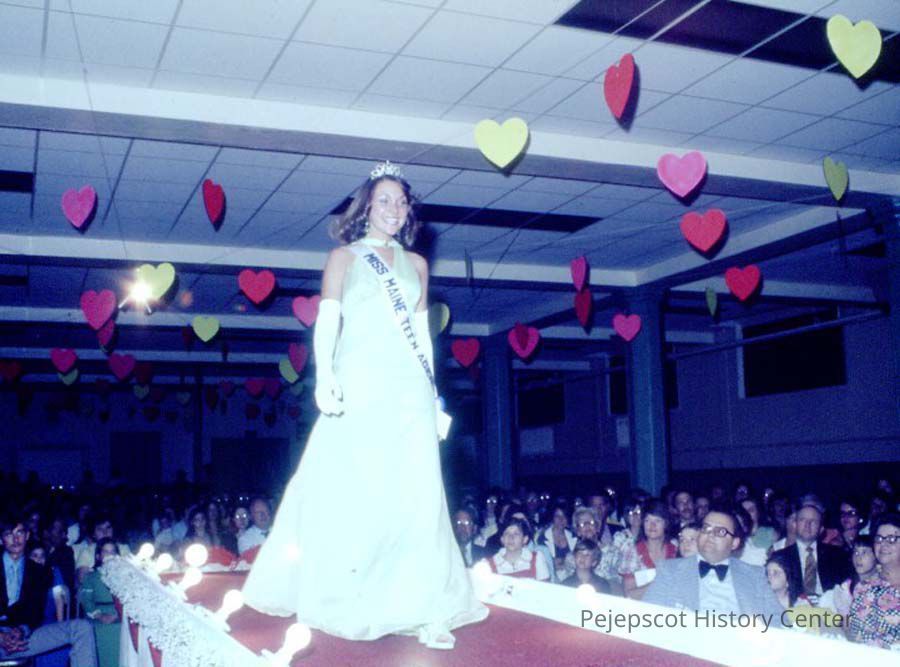 A 35 mm color slide of a contestant in the 1974 Miss Teen Queen Pageant. The slide is marked, "Jul 74" and "12"