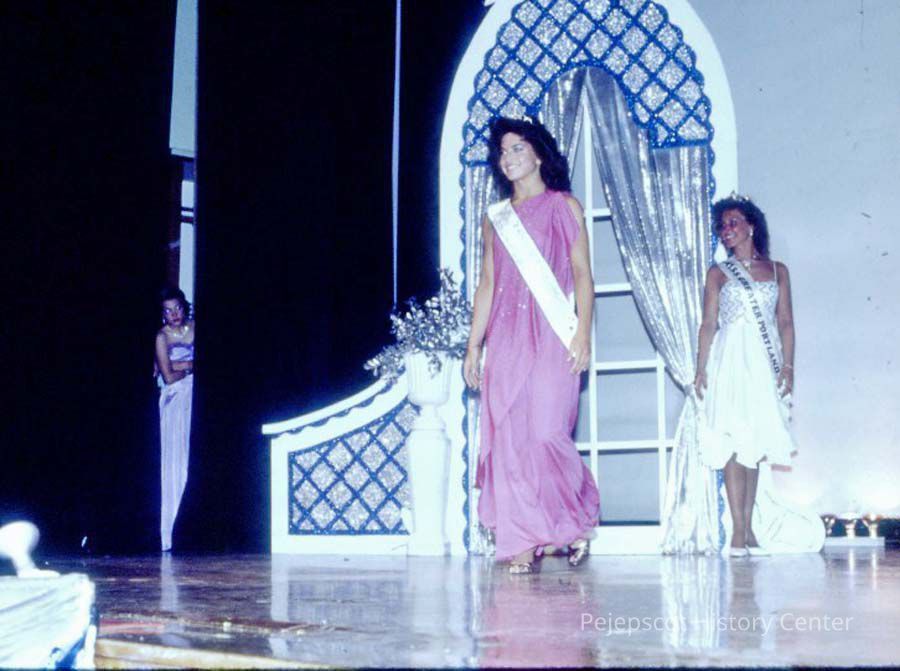 A 35 mm color slide of a contestant in the 1983 Miss Teen Queen Pageant. The slide is marked, "Jul 83" and "14".