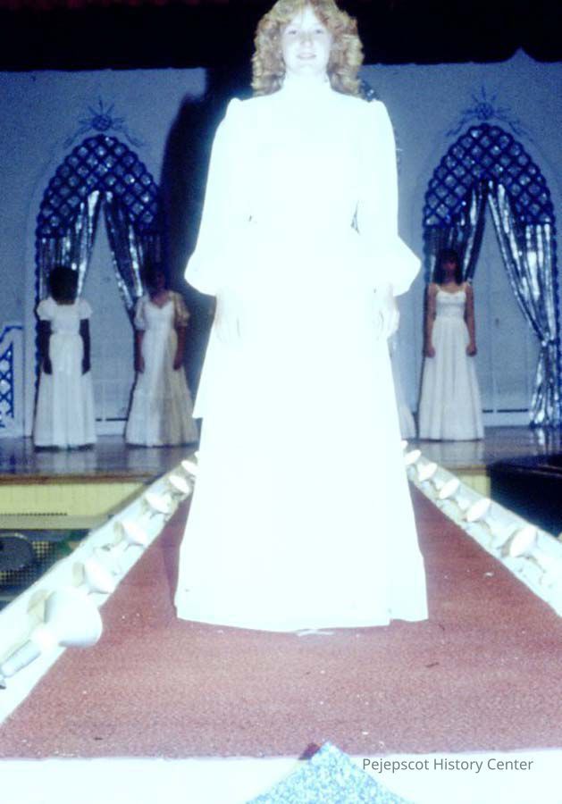 A 35 mm color slide of a contestant in the 1983 Miss Teen Queen Pageant. The slide is marked, "Jul 83" and "38".