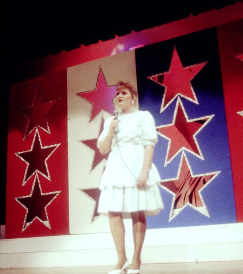 A 35 mm color slide of a contestant in the 1986 Miss Teen Queen Pageant. The slide is marked, "Jun 86" and "22".