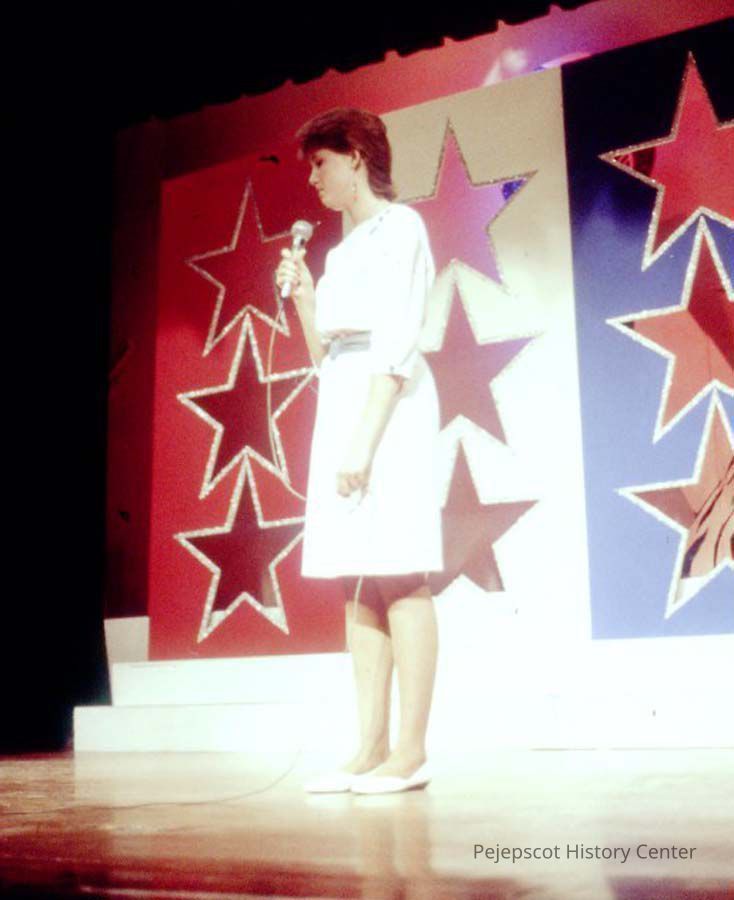 A 35 mm color slide of a contestant in the 1986 Miss Teen Queen Pageant. The slide is marked, "Jun 86" and "13".