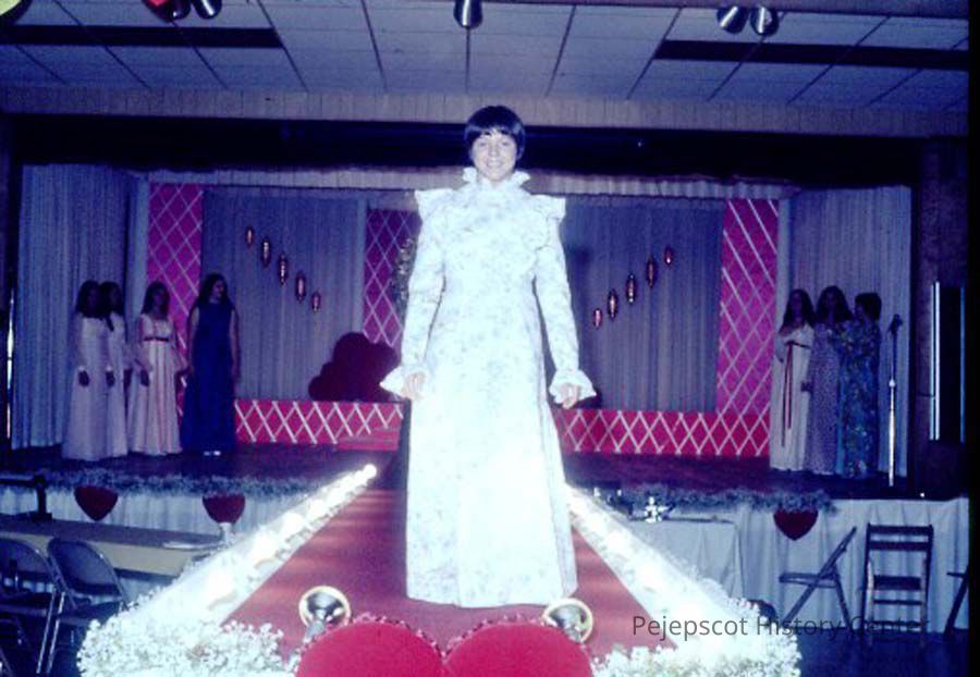 A 35 mm slide of a contestant in the 1974 Miss Teen Queen Pageant. It is marked "Jul 74" and "8". Sponsored by Christian Youth Organization (CYO).