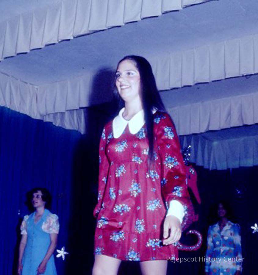 A 35 mm slide of a contestant in the 1975 Miss Teen Queen Pageant. It is marked "Jul 75" and "18". Sponsored by Christian Youth Organization (CYO).