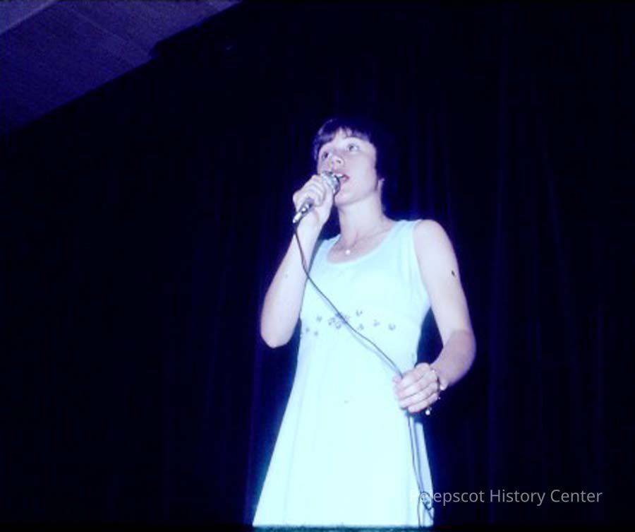 A 35 mm slide of a contestant in the 1975 Miss Teen Queen Pageant. It is marked "Jul 75"and "6". Sponsored by Christian Youth Organization (CYO).