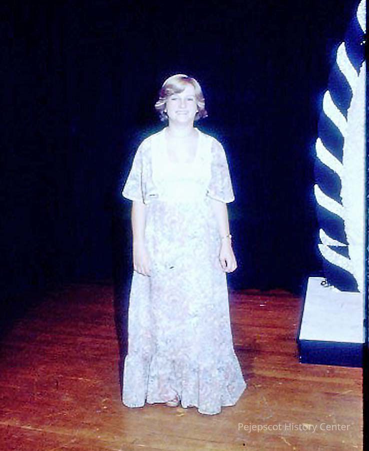 A 35 mm slide of a contestant in the 1978 Miss Teen Queen Pageant. It is marked "Jul 78", "2-38" and "8". Sponsored by Christian Youth Organization (CYO).