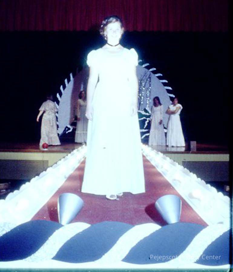 A 35 mm slide of a contestant in the 1978 Miss Teen Queen Pageant. It is marked "Jul 78" and "21". Sponsored by Christian Youth Organization (CYO).