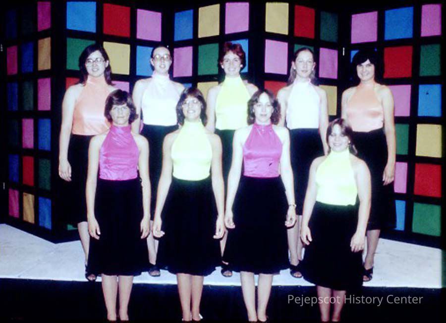 A 35 mm slide of 9 contestants in the 1979 Miss Teen Queen Pageant. It is marked "Jul 79" and "17". Sponsored by Christian Youth Organization (CYO).