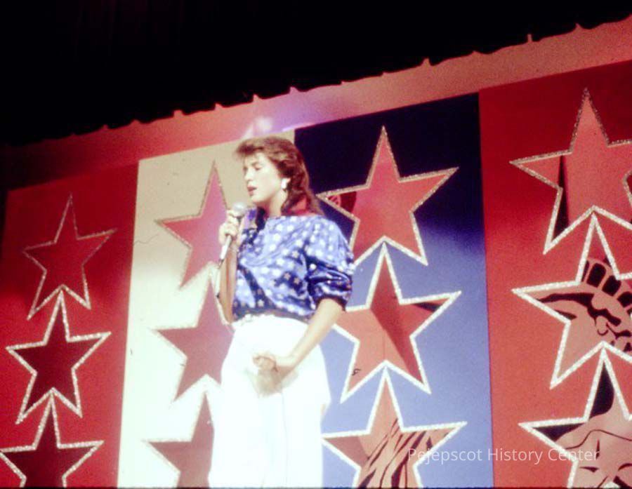 A 35 mm color slide of a contestant in the 1986 Miss Teen Queen Pageant. The slide is marked, "Jun 86" and "38".