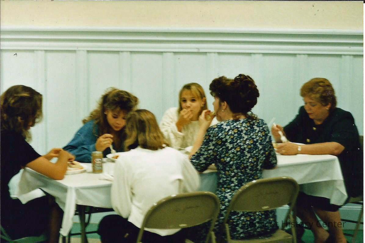 A color photograph of people eating. Photographer's # 2-13 CYO sponsored
