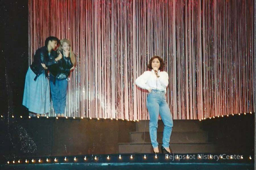 A color photograph of a girl singing.