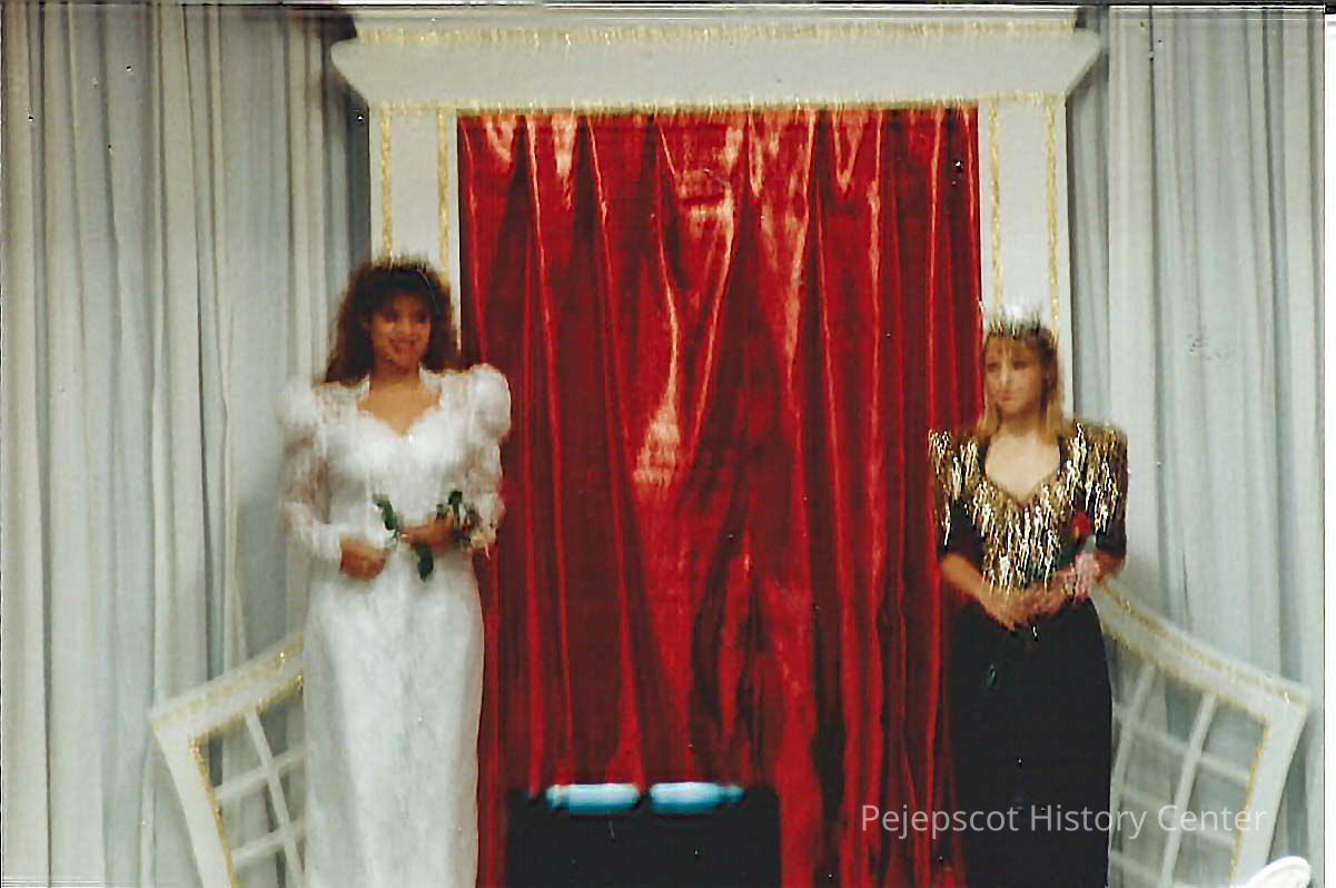 A color photograph of two winners. They both are wearing Tiaras. Photographer's # 4-4 CYO sponsored