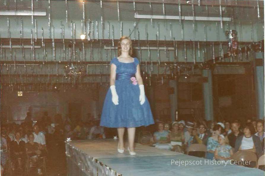 A color photograph of an unknown girl competing in the Brunswick Teen Queen Pageant. The photo is marked on it's edge "Jul 64".