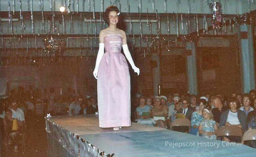 A color photograph of an unknown girl competing in the Brunswick Teen Queen Pageant. The photo is marked on it's edge "Jul 64".