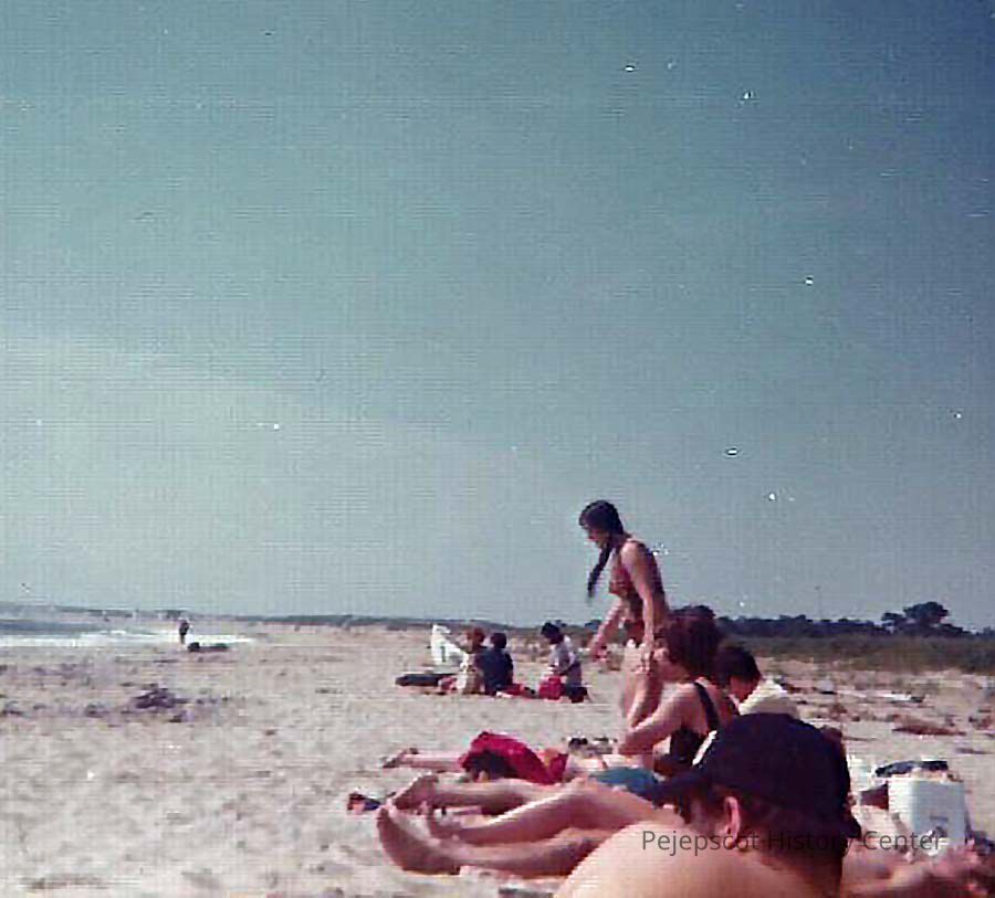 A color photograph of a beach scene.