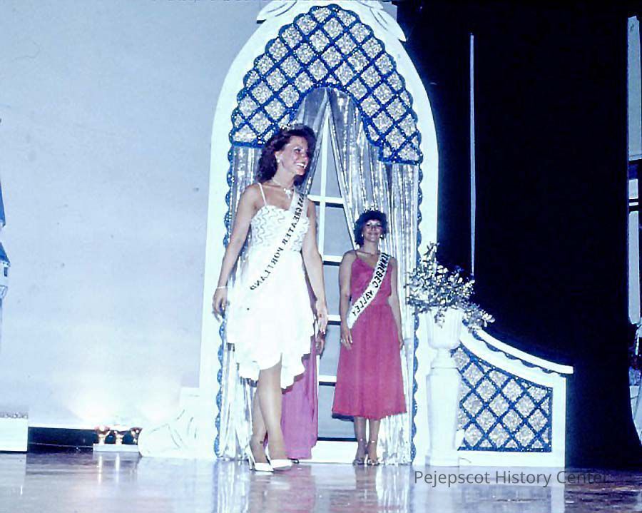 A 35 mm color slide of a contestant in the 1983 Miss Teen Queen Pageant. The slide is marked, "Jul 83", "10" and "S-64".