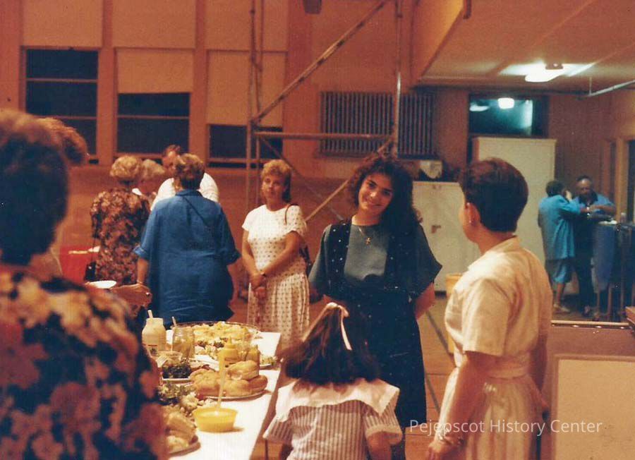 A color photograph of a reception for parents, Judges and participants. Seen are Chrisse, Catherine and friend.