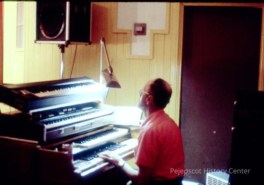 A 35 mm color slide of the organ player in the 1986 Miss Teen Queen Pageant. The slide is marked, "Jun 86" and by "34". Sponsored by Christian Youth Organization (CYO).