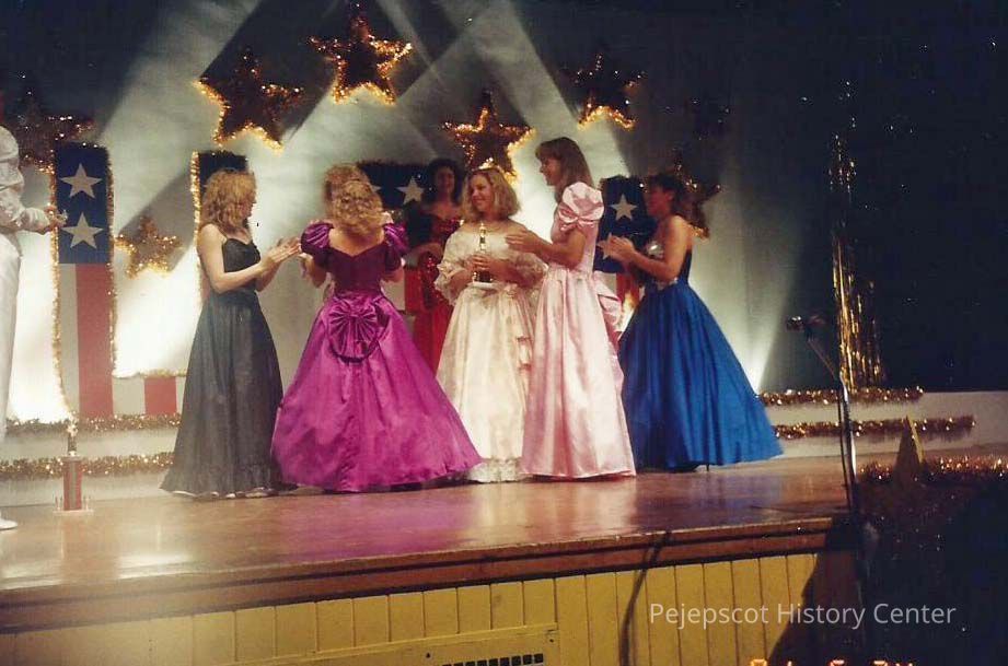 A color photograph of 5 girls wearing gowns. the photo has "91624" printed on it. CYO sponsored