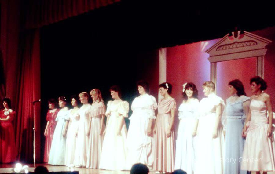 A 35 mm color slide of all contestants in the 1986 Miss Teen Queen Pageant. The slide is marked, "Jun 86" and by "37". Sponsored by Christian Youth Organization (CYO).