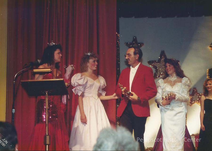 A color photograph of 3 girls and a man on stage. CYO sponsored