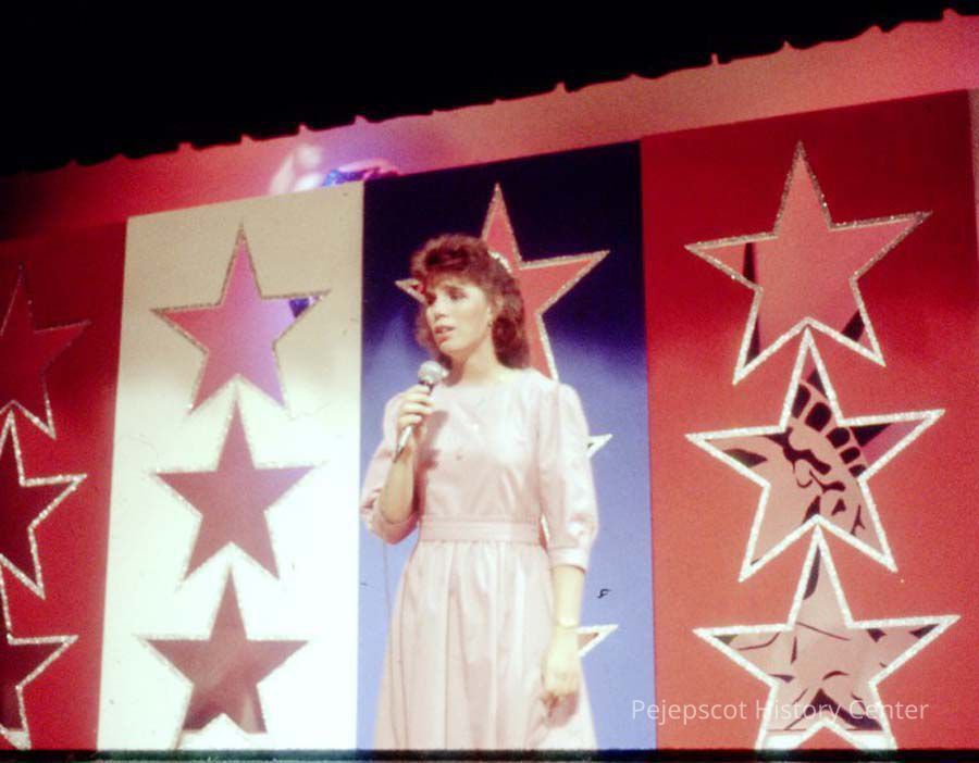 A 35 mm color slide of a contestant in the 1986 Miss Teen Queen Pageant. The slide is marked, "Jun 86" and "5".
