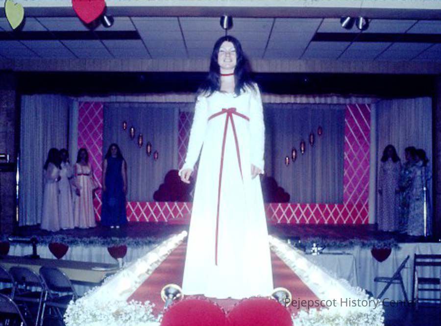 A 35 mm slide of a contestant in the 1974 Miss Teen Queen Pageant. It is marked "Jul 74" and "5". Sponsored by Christian Youth Organization (CYO).