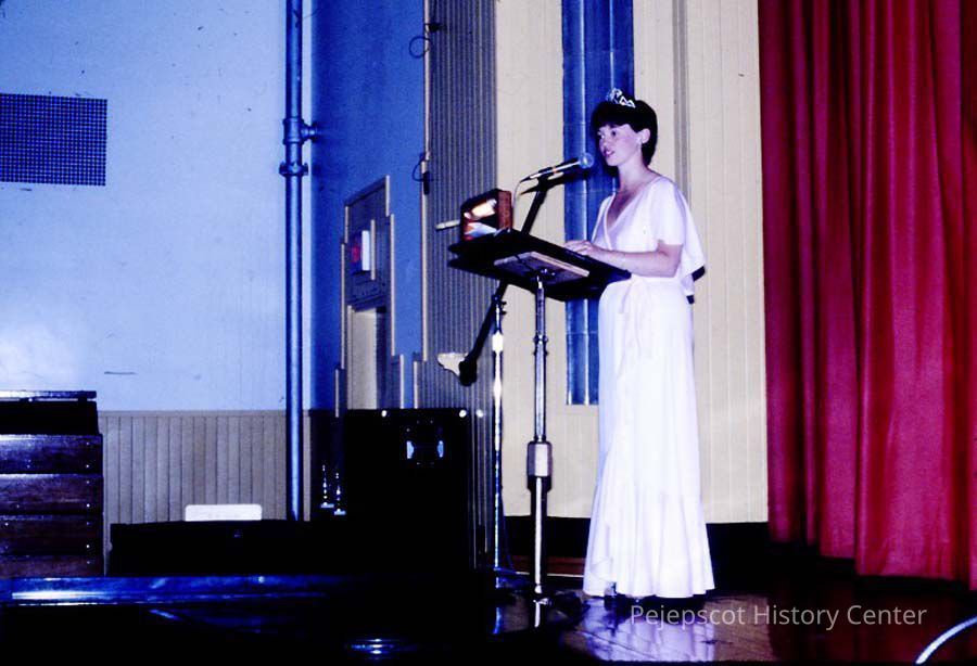 A 35 mm color slide of a contestant in the 1980 Miss Teen Queen Pageant. The slide is marked, "Jul 80" and by a printed "15". Sponsored by Christian Youth Organization (CYO).