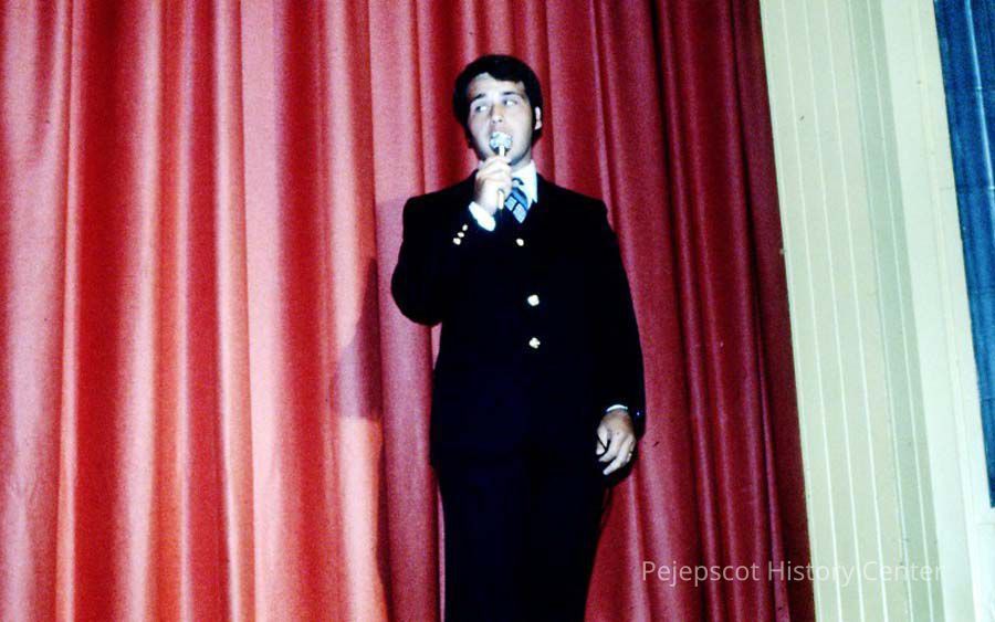 A 35 mm color slide of the MC in the 1980 Miss Teen Queen Pageant. The slide is marked, "Jul 80" and by a printed "18". Sponsored by Christian Youth Organization (CYO).