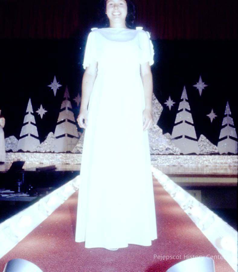 A 35 mm color slide of Nancy Boudreau a contestant in the 1980 Miss Teen Queen Pageant. The slide is marked, "Jul 80" and by a printed "19". Sponsored by Christian Youth Organization (CYO).