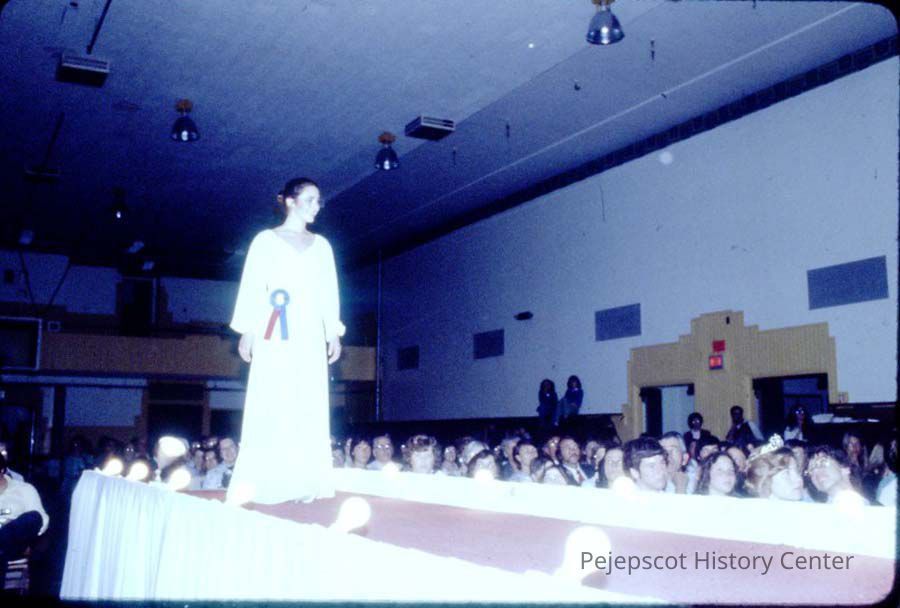 A 35 mm color slide of a contestant in the 1980 Miss Teen Queen Pageant. The slide is marked, "Jul 80" and by a printed "19". Sponsored by Christian Youth Organization (CYO).
