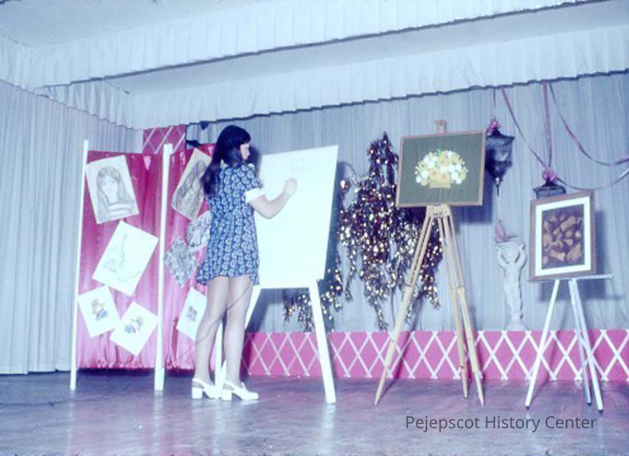 A 35 mm slide of a contestant in the 1974 Miss Teen Queen Pageant. It is marked "Jul 74" and "7". Sponsored by Christian Youth Organization (CYO).