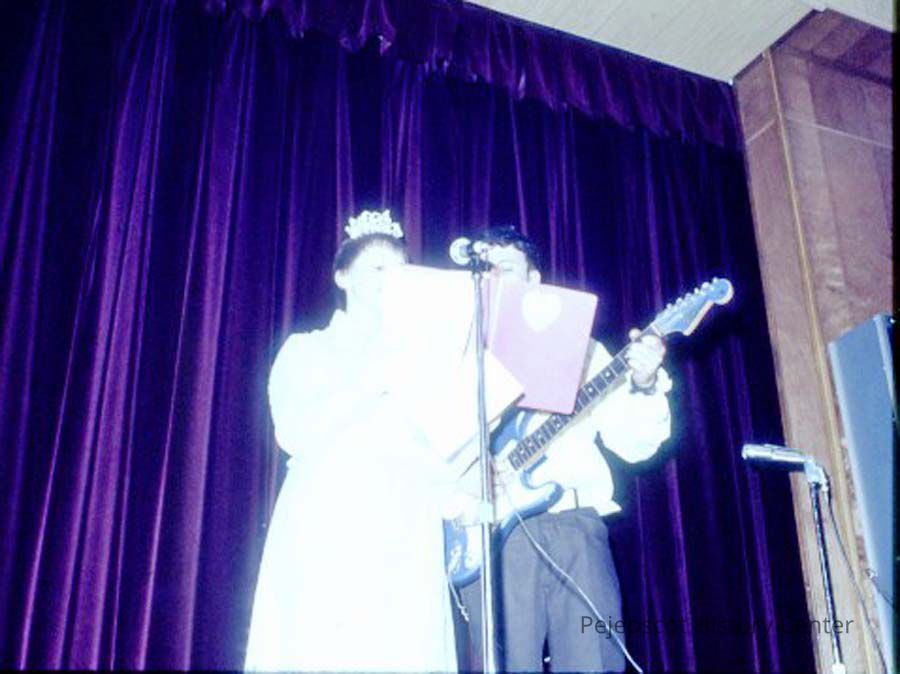 A 35 mm slide of a contestant in the 1974 Miss Teen Queen Pageant. It is marked "Jul 74" and "10". Sponsored by Christian Youth Organization (CYO).