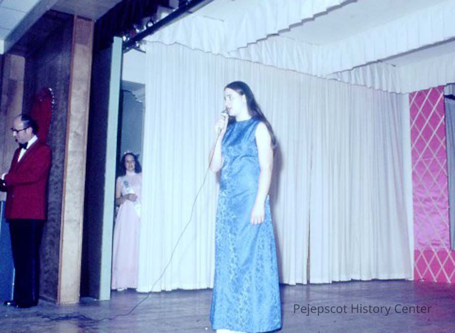 A 35 mm slide of a contestant in the 1974 Miss Teen Queen Pageant. It is marked "Jul 74" and "18". Sponsored by Christian Youth Organization (CYO).