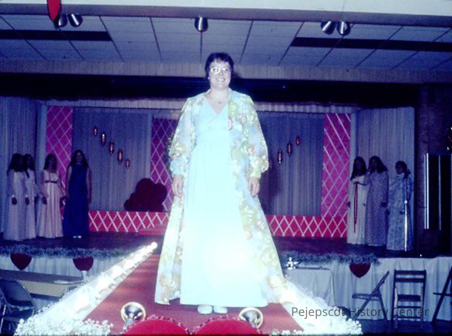 A 35 mm slide of a contestant in the 1974 Miss Teen Queen Pageant. It is marked "Jul 74" and "7". Sponsored by Christian Youth Organization (CYO).