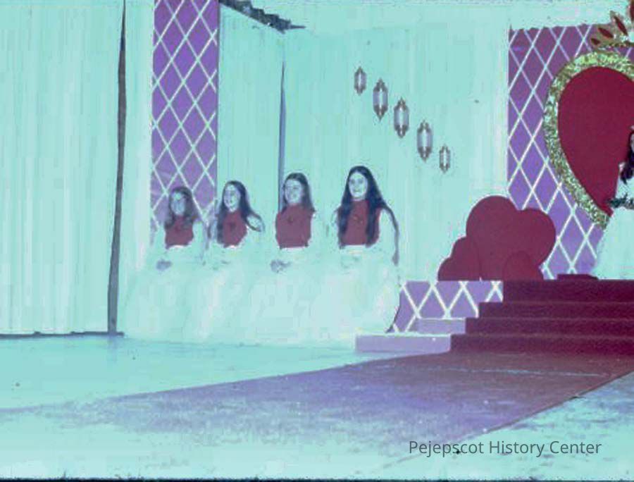 A 35 mm slide of 4 contestant in the 1974 Miss Teen Queen Pageant. It is marked "Jul 74" and "15". Sponsored by Christian Youth Organization (CYO).