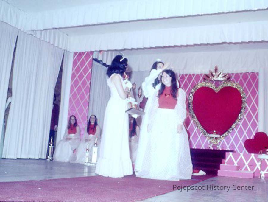 A 35 mm slide of the crowning of a new Queen in the 1974 Miss Teen Queen Pageant. It is marked "Jul 74" and "17". Sponsored by Christian Youth Organization (CYO).