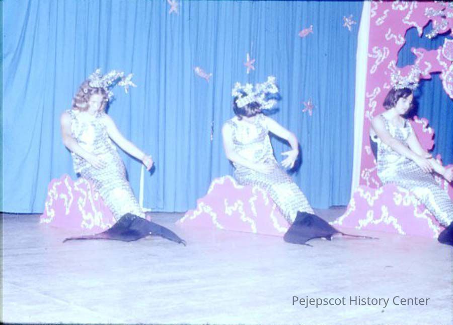 A 35 mm slide of 3 contestants dancing in the 1975 Miss Teen Queen Pageant. It is marked "Jul 75", "1-5", "7-93" and "14". Sponsored by Christian Youth Organization (CYO).