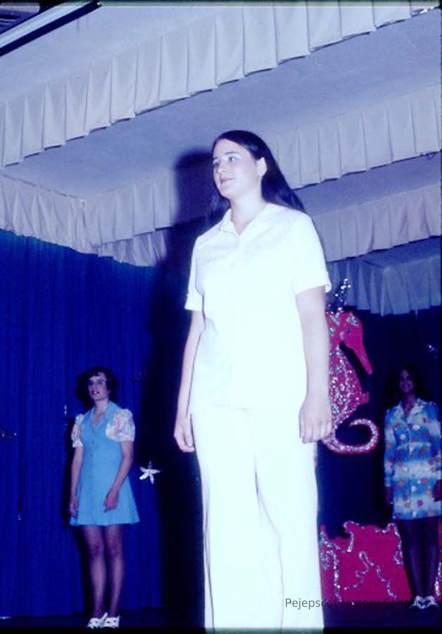 A 35 mm slide of a contestant in the 1975 Miss Teen Queen Pageant. It is marked "Jul 75" and "17". Sponsored by Christian Youth Organization (CYO).