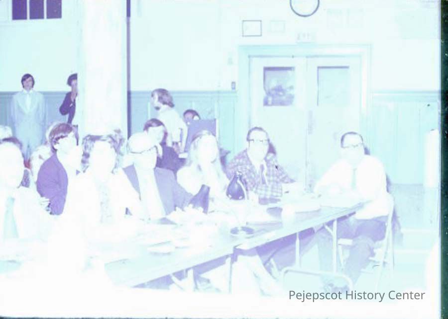 A 35 mm slide of a group of judges in the 1975 Miss Teen Queen Pageant. It is marked "Jul 75" and "21". Sponsored by Christian Youth Organization (CYO).