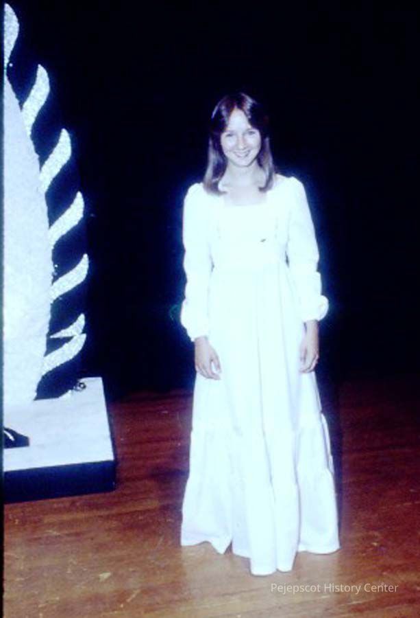 A 35 mm slide of a contestant in the 1978 Miss Teen Queen Pageant. It is marked "Jul 78", "2-42" and "9". Sponsored by Christian Youth Organization (CYO).