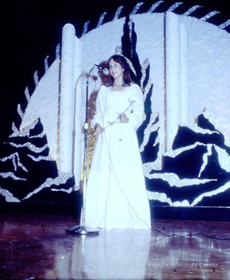 A 35 mm slide of a contestant in the 1978 Miss Teen Queen Pageant. It is marked "Jul 78", "2-76" and "21". Sponsored by Christian Youth Organization (CYO).