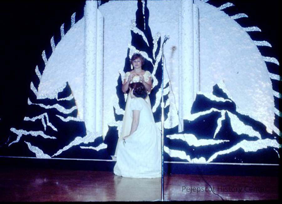 A 35 mm slide of a contestant putting a tiara on the head of another in the 1978 Miss Teen Queen Pageant. It is marked "Jul 78", "3-16" and "22". Sponsored by Christian Youth Organization (CYO).