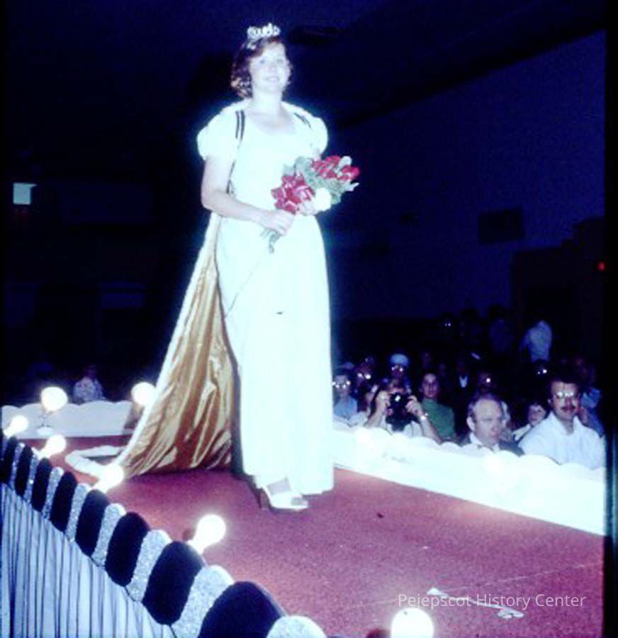 A 35 mm slide of a winner in the 1978 Miss Teen Queen Pageant. It is marked "Jul 78" and "13". Sponsored by Christian Youth Organization (CYO).