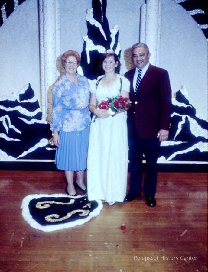 A 35 mm slide of a winner in the 1978 Miss Teen Queen Pageant along with her parents. It is marked "Jul 78" and "14". Sponsored by Christian Youth Organization (CYO).