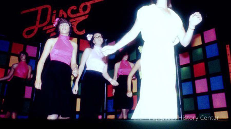 A 35 mm slide of a contestant in the 1979 Miss Teen Queen Pageant. It is marked "Jul 79", "79", "1-9" and "4". Sponsored by Christian Youth Organization (CYO).