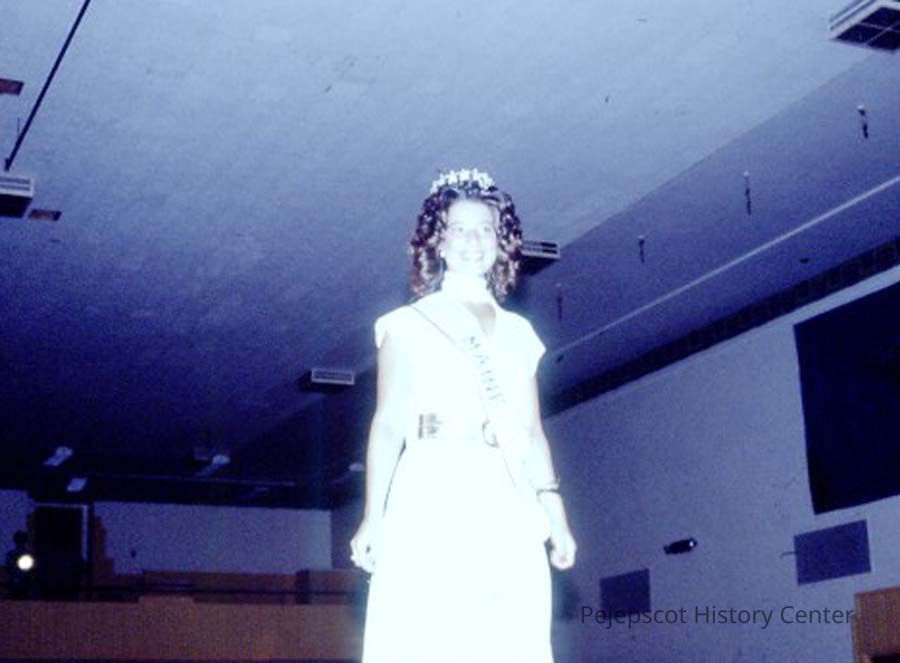A 35 mm slide of a winner in the 1979 Miss Teen Queen Pageant. It is marked "Jul 79" and "10". Sponsored by Christian Youth Organization (CYO).